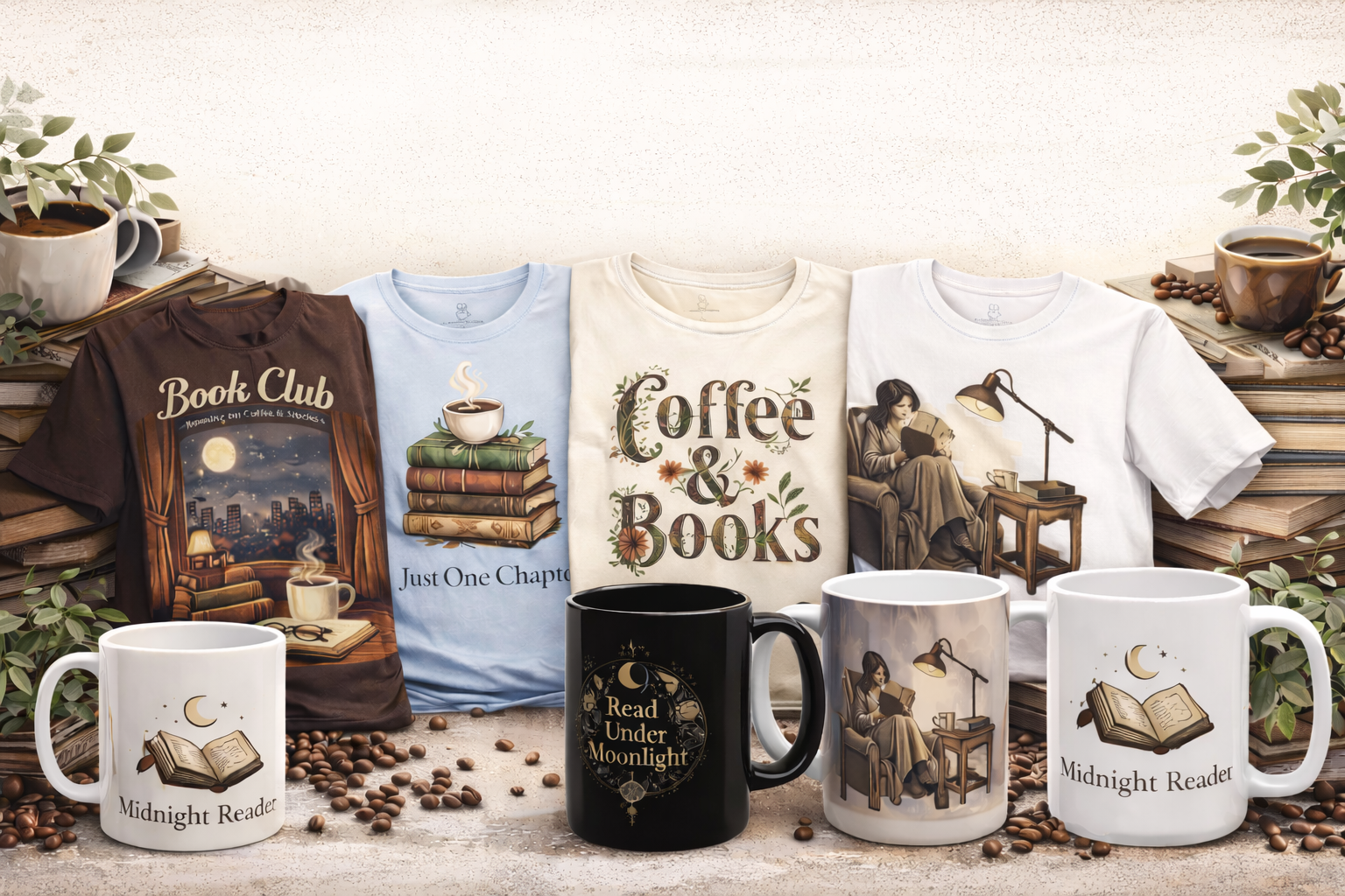 Sip slowly. Read deeply. Thoughtfully designed mugs & t-shirts for readers who live between pages and coffee breaks.